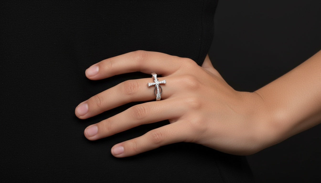 Our Infinity Cross Ring comes in sizes 5 through 10, please check our size chart for all the details.